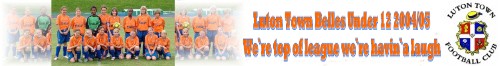 Under 12 Match Report Sunday October 24th 2004 Hatfield 0 - Luton Town Belles 7 Unfortunately no action pictures today as our roving photographer was unavailable The home team would have been buoyant after a tremendous come back against Potters Bar last Sunday when they came from 3-0 down to win 4-3 in what must be the comeback of the season so far. So despite their lowly position in the league we got the feeling that they would be really up for this. Having won the toss we decided to play up the slope in the first half. And the for the first fifteen minutes we were camped in their half, but without being able to put the ball in the net. That was mainly due to the Hatfield keeper who made several good saves, and some wasted chances on our part. Then after seventeen minutes a goal at last. We had been getting in some decent crosses in from the right hand side, and this time Alicia McIntosh drove in a low cross into the path of Serena Lawrence who just passed the ball low into the net from twelve yards. It was good to see that at last we were using the width of the pitch well, and two minutes later some good work by Desiree Yearwood down the left flank set up a chance for Katie Davis who scored with a cross shot from the left edge of the penalty area. For all our possesion and chances it looked as though it would only be 2-0 at the break. But just on the half time whistle Kate Harte played a through ball for Serena Lawrence who again hit a low shot into the bottom corner It was hoped that we could at least double our score in the second half and when after just three minutes we added a fourth goal it looked on. Following a corner the ball was half cleared. But it fell invitingly for Kate Harte, who hit what is becoming something of a trade mark block buster into the roof of the net from the edge of the penalty area. Then followed twenty minutes of shear frustration. Shots rained in, crosses were delivered, but we just could not score. Indeed Hatfield even managed to get forward on a couple of occasions. Then with eight minutes left we did score again. Desiree Yearwood was first to the ball following a Hatfield goal kick, she controled the ball well before slipping a through ball for Leanne Lizaitis. She skipped past two defenders before placing the ball into the bottom corner from just inside the area. Straight from the re start we won the ball back, and Katie Davis burst forward and unleashed rocket shot from twenty five yards. Unluckily for her it smacked against the crossbar, but Alicia McIntosh was first to react and knocked in the rebound. Again from the re start we won the ball back quickly. The ball was worked down the right, and eventually Alicia McIntosh crossed the ball low across the goalmouth and Clare Howe was on hand to sweep the ball into the net from close range. Three goals in as many minutes, put the gloss on what was a good performance. But we must be a little more lethal in front of goal, and if that happens, then somebody will be on the end of a real hammering. Team Today, Thea Fraser, Alice Bowler, Megan Willmott, Serena Lawrence, Kate Harte, Bethany Smith, Alicia McIntosh, Leanne Lizaitis, Katie Davis, Clare Howe, Desiree Yearwood On significant result today was St. Albans 3 - Harpenden 1. That result means that we are now six points clear at the top of the league table |